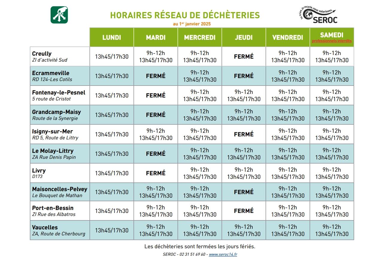 Nouveaux horaires actualisés à compter du 1er Janvier 2025