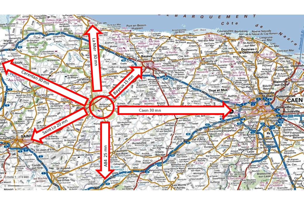 Idéalement située aux portes des bassins d'emploi de Bayeux (16 km), Saint-Lô (21 km) et Caen (36 km), proche de la mer et de grands axes de circulation (A84 et A13), la commune bénéficie d'un environnement verdoyant de type bocage Normand et d'une forêt de 2000 hectares.