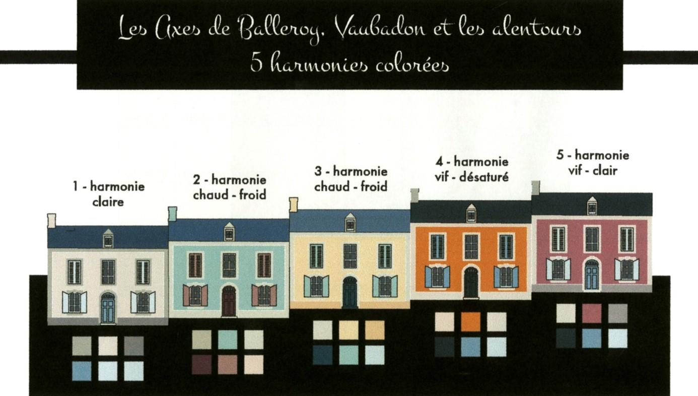 Fig 5 : Exemples de choix de couleurs possibles proposées pour la rue du Sapin ainsi que pour les axes de Balleroy et Vaubadon (Conception Ludivine Scelles, 2017).